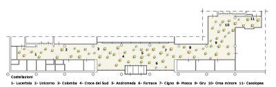 I nuovi ingressi sono concepiti come un percorso attraverso cui fluiscono le energie delle persone che li attraversano. A simboleggiare questo flusso, costellazioni realizzate con cubi di luce, che dal soffitto scendono sulle pareti, movimentandole, si trasformano in tagli di luce inattesi. Si è scelto di rappresentare costellazioni che avessero un significato benaugurante e che richiamassero la speranza nel futuro e la forza di trovare in sé stessi le energie che ci guidano nella realizzazione dei nostri obiettivi.