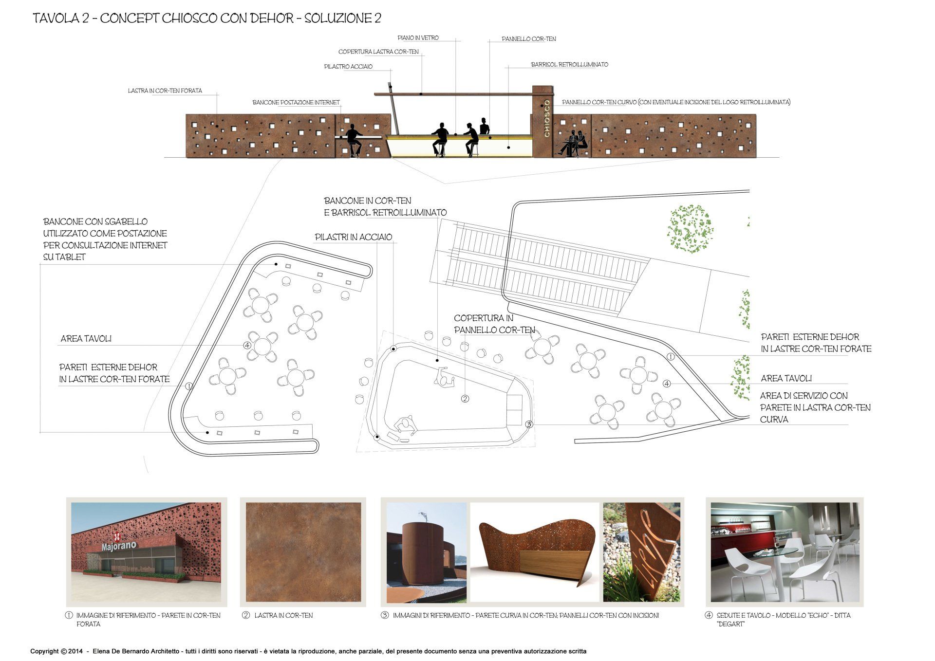 Committente: Privato - Progetto: Studio concept chiosco con dehor - Luogo: Arese - Anno: 2014